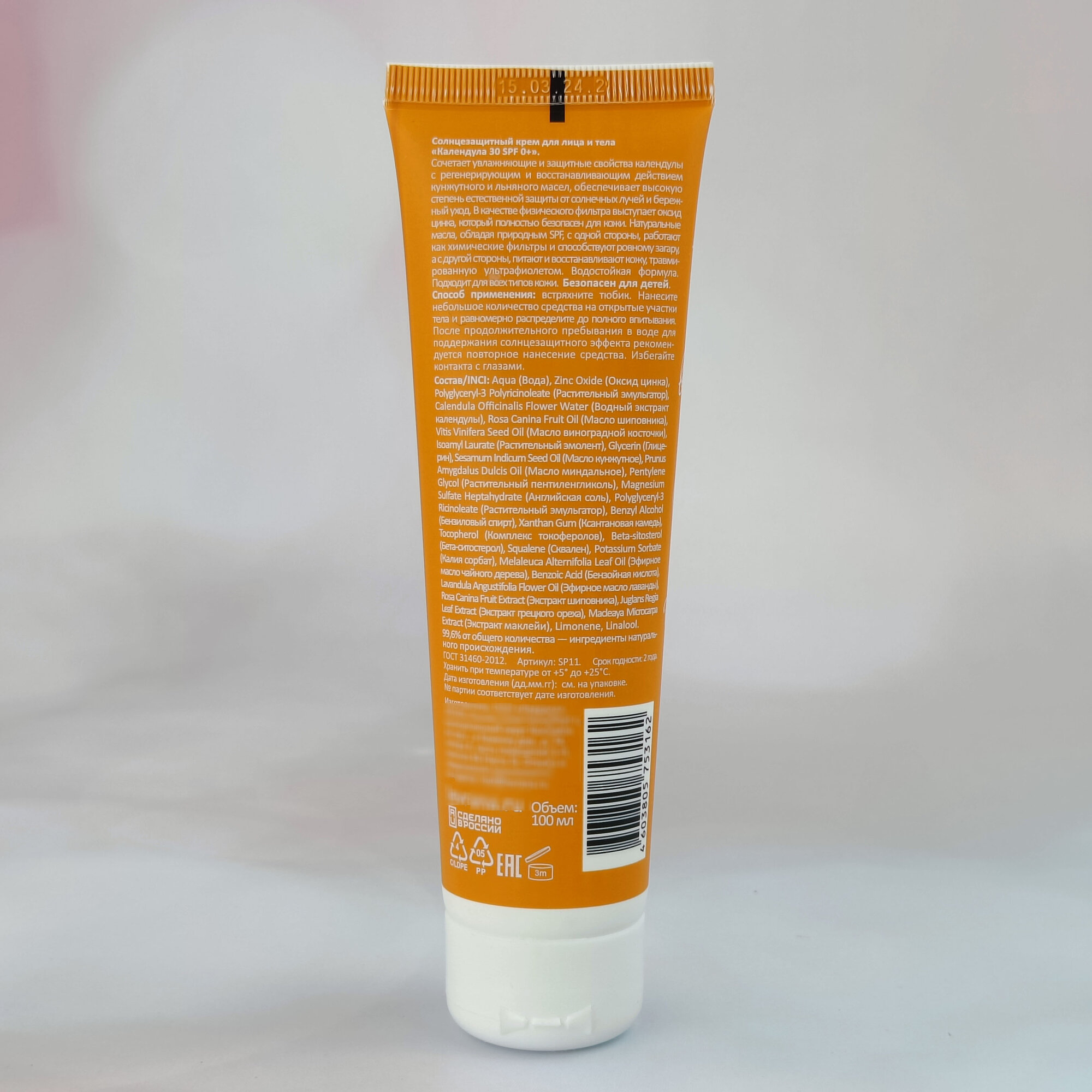 Крем солнцезащитный для лица и тела Levrana Sun Screen Календула, SPF 30, 100 мл информация: