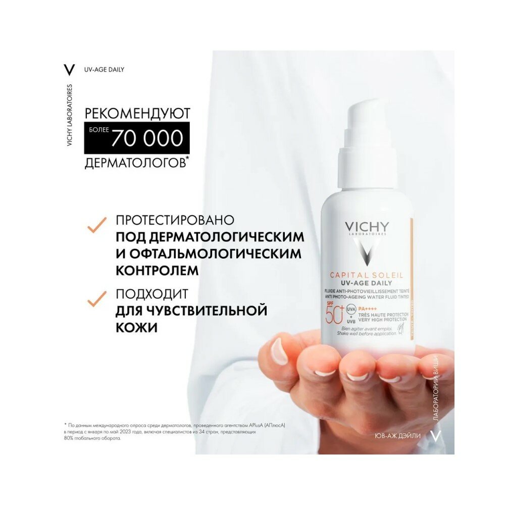 10 цен на Невесомый тонирующий солнцезащитный флюид для лица против признаков фотостарения Vichy UV-Age Daily SPF 50+, 40 мл