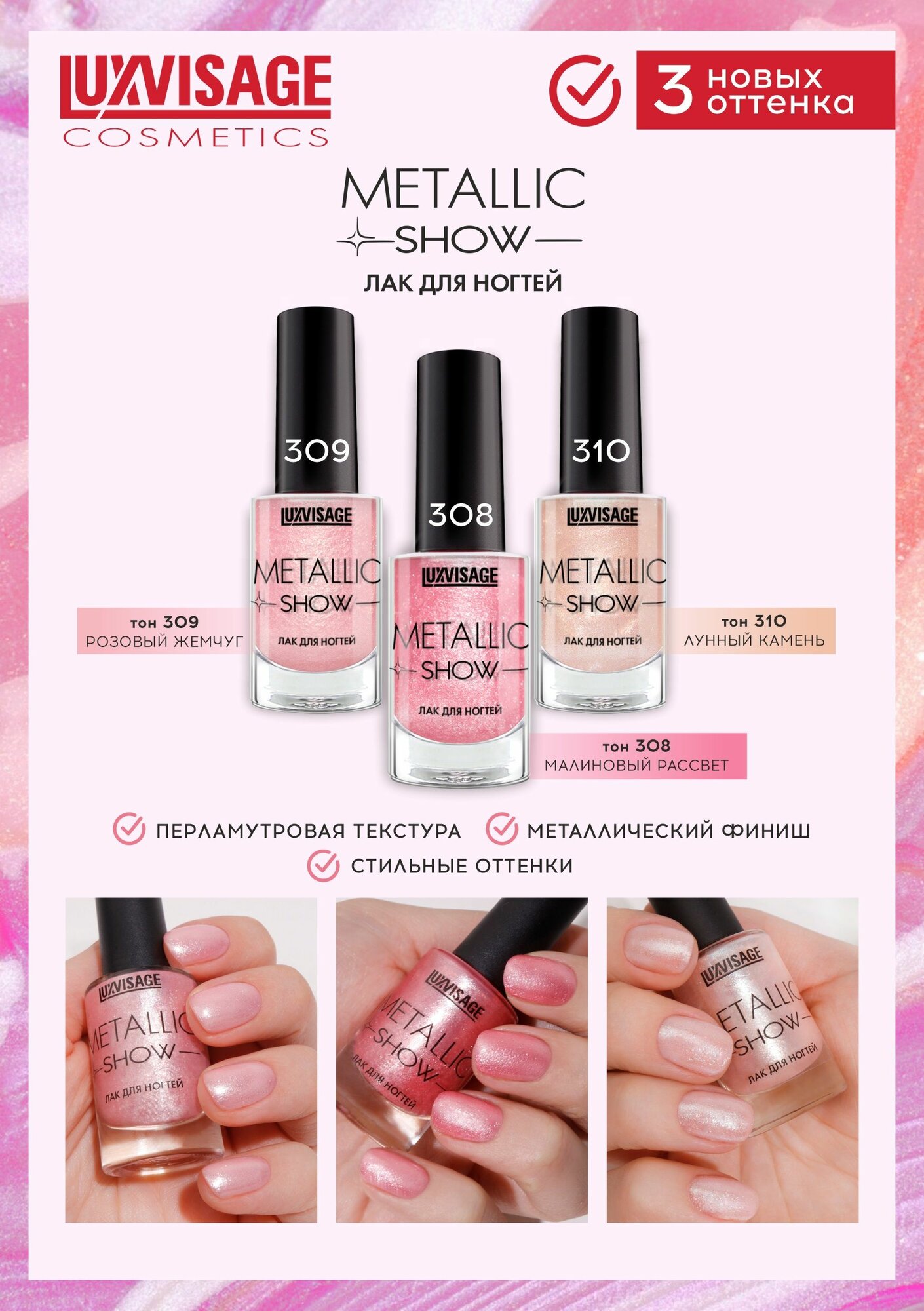 Лак для ногтей Luxvisage "Metallic Show", тон 309, Розовый жемчуг, 9 г 371 ₽