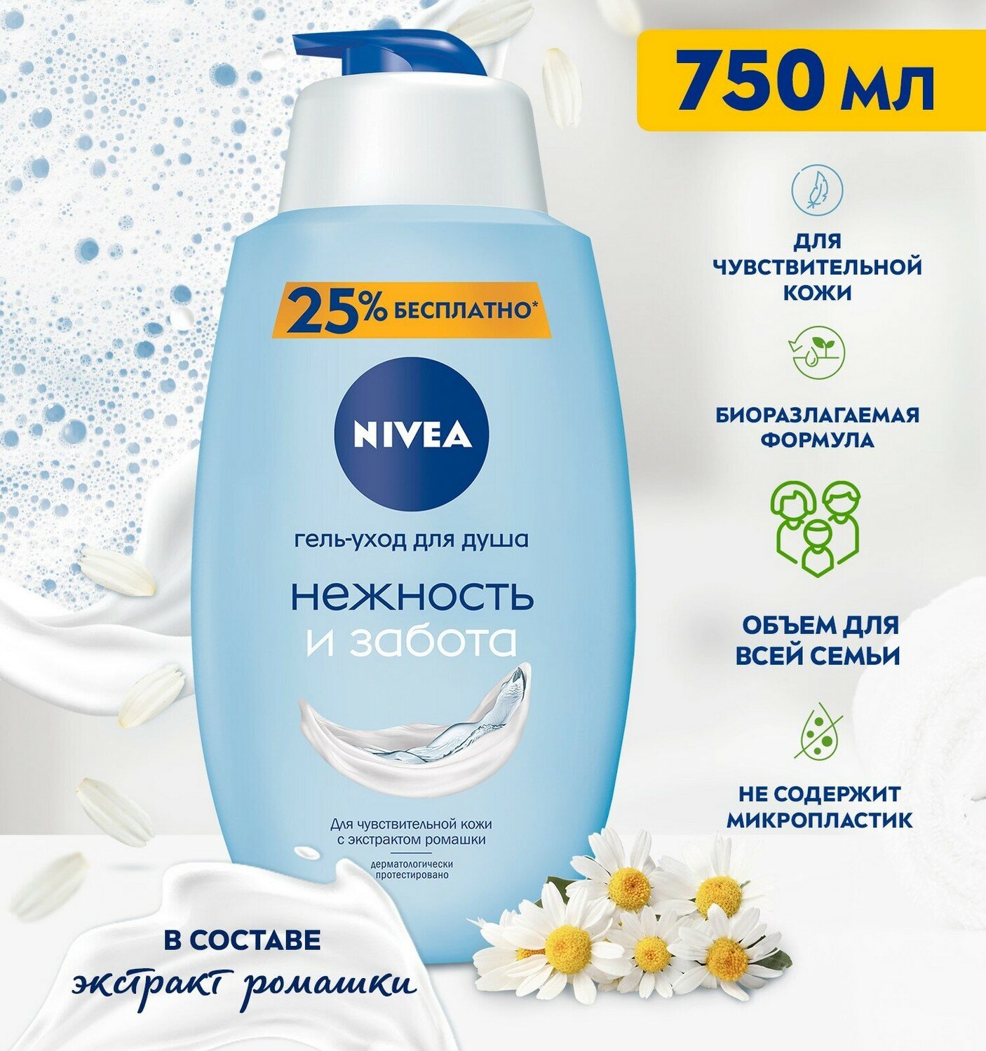 Гель-уход для душа Nivea Нежность и забота, для чувствительной кожи, 750 мл
