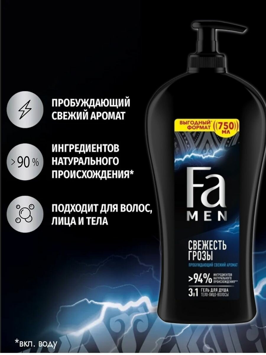 Fa 3в1 Гель для душа мужской для тела, волос и лица, Свежесть грозы, 750 мл 780 ₽