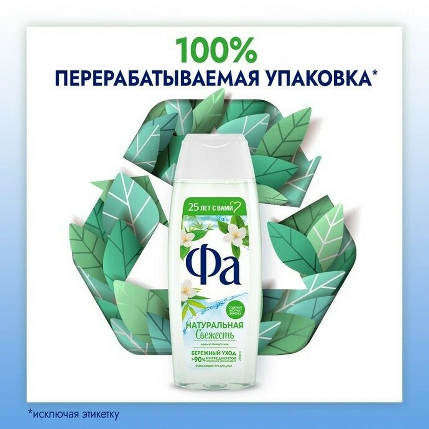 10 цен на Фа Гель для душа Натуральная свежесть Белый чай и бамбук травяной, 250 мл - 1 шт