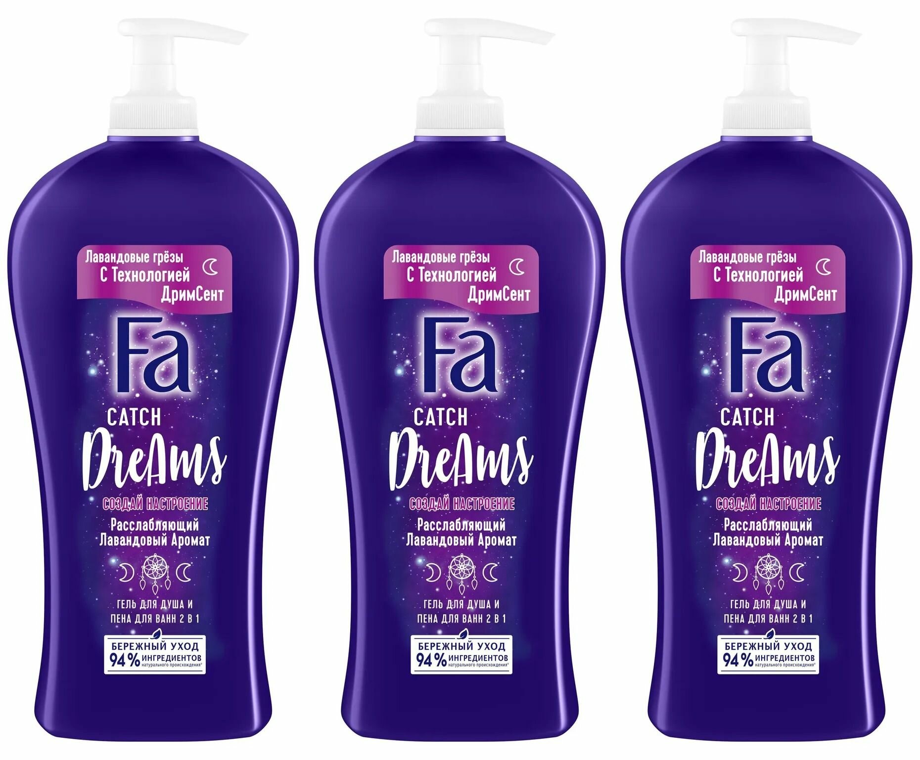 10 цен на Фа Гель для душа и пена для ванн 2в1 Catch Dreams, с ароматом лаванды, 750 мл х 3 шт