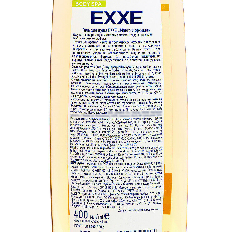 10 цен на Гель для душа EXXE, "Манго и орхидея", для всех типов кожи, 400 мл