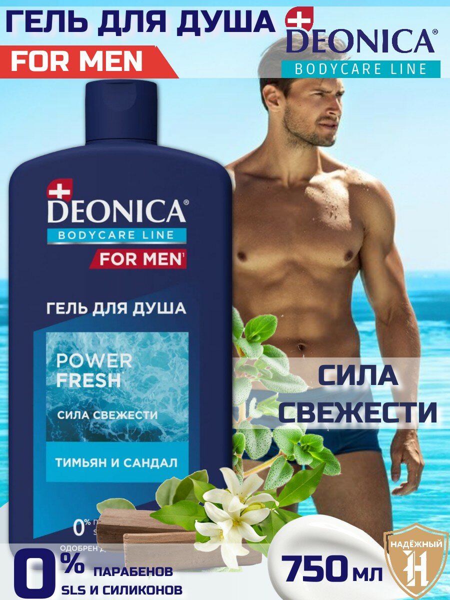 Гель для душа Deonica for men "Power Fresh" мужской, одобрен дерматологами, 750 мл. информация:
