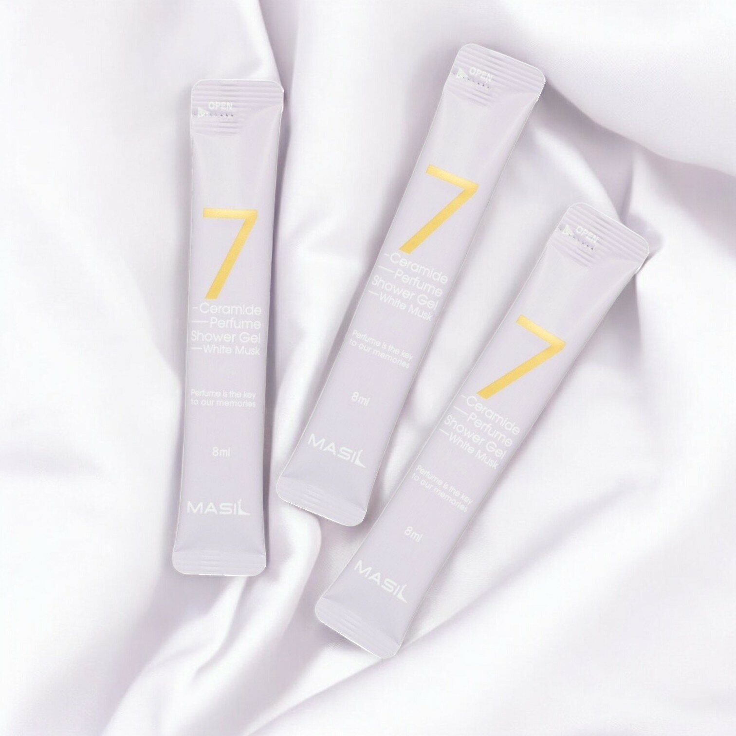 10 цен на MASIL 7 CERAMIDE PERFUME SHOWER GEL STICK POUCH Парфюмированный гель для душа с ароматом белого мускуса 3шт*8мл
