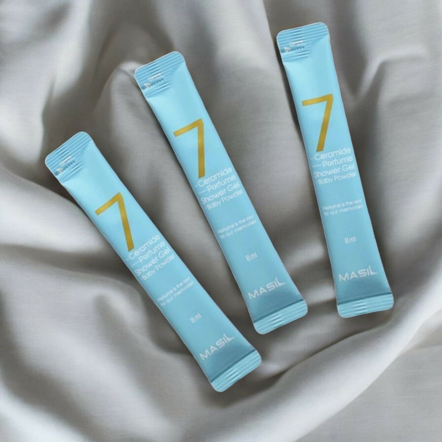 Отзывы на MASIL 7 CERAMIDE PERFUME SHOWER GEL STICK POUCH Парфюмированный гель для душа с ароматом детской присыпки 3шт*8мл