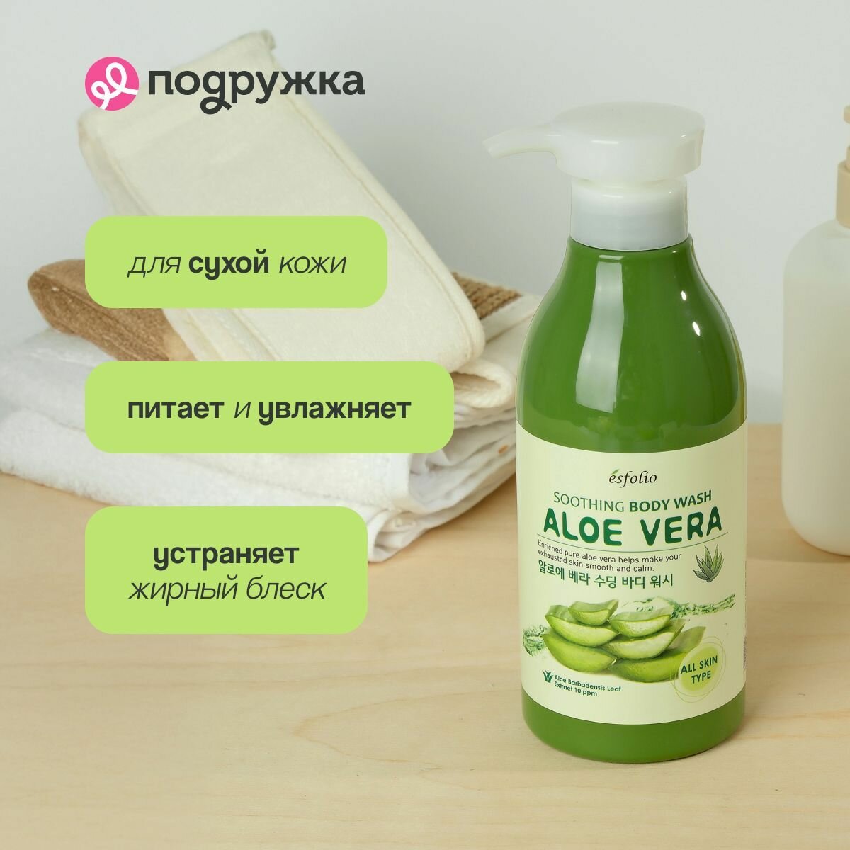 Гель для душа ESFOLIO ALOE VERA Успокаивающий 500 мл информация: