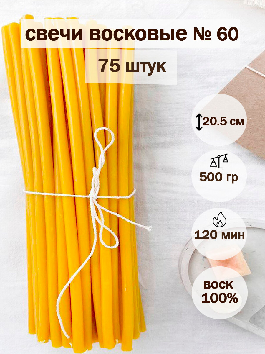 Церковные свечи восковые освещенные №60 (75шт/20см/1ч20) информация: