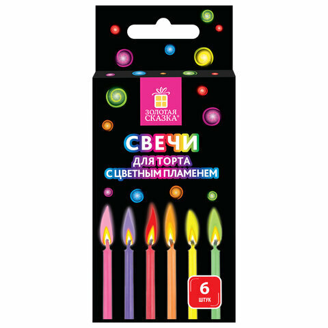 Отзывы на Набор свечей для торта с цветным пламенем 6 шт, 6 см, сдержателями, золотая сказка, 591459