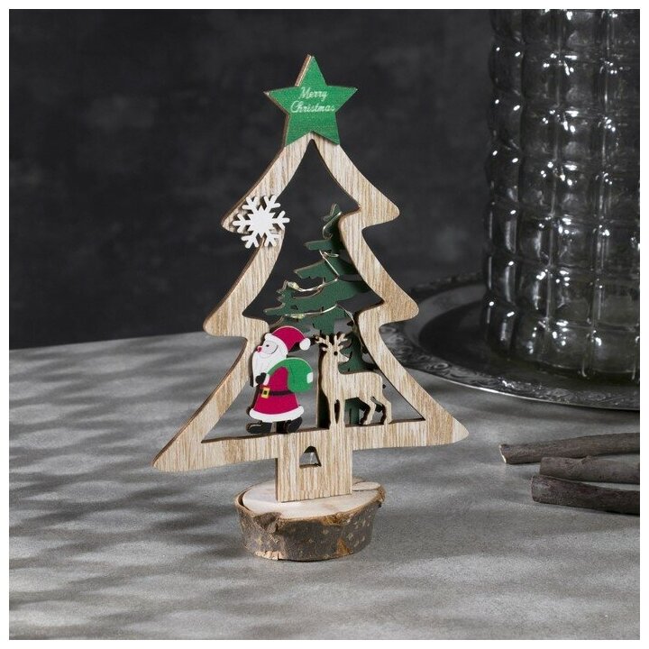 10 цен на Светодиодная фигура «Ёлка с Дедом Морозом» 13 × 20 × 5 см, дерево, батарейки CR2032х1 (в комплекте), свечение тёплое белое