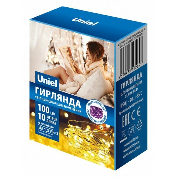Uniel Светодиодная гирлянда Uniel Роса фиолетовый ULD-S1000-100/SCB/3AA Purple IP20 Dew UL-00007187 504 ₽
