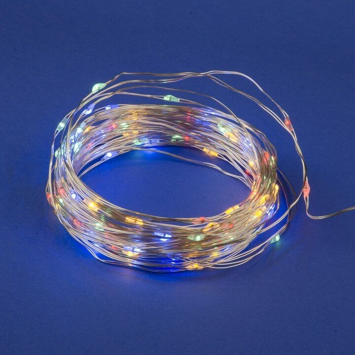 Гирлянда нить роса на батарейках, на елку, стену, 10м, разноцветная, новогодняя, светодиодная