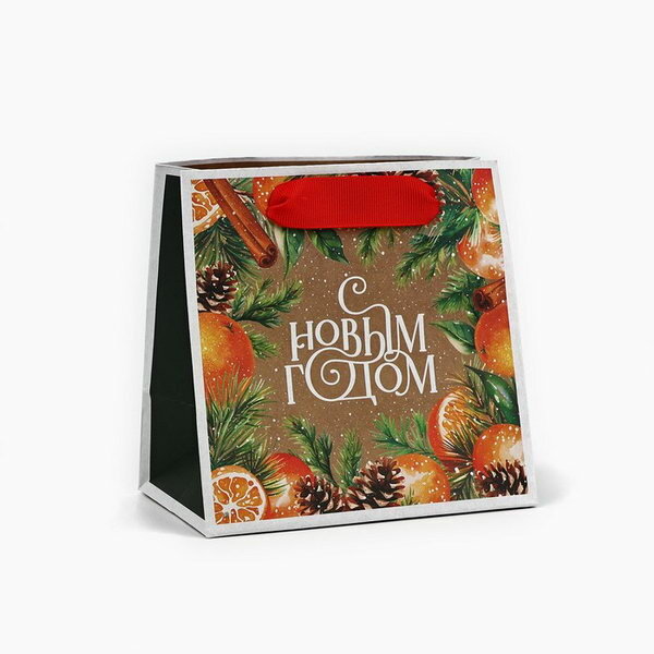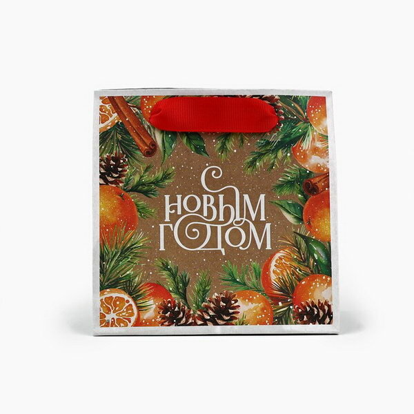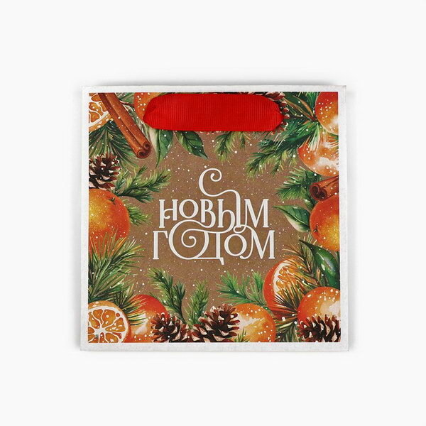 Отзывы на Пакет подарочный новогодний крафтовый квадратный "С Новым годом", 14 x 14 x 9 см