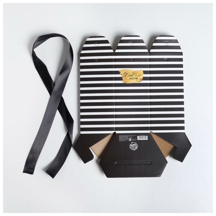 Коробка подарочная для цветов «Монохром», 17 х 15 х 20 см, лента в комплекте, для упаковки подарка информация: