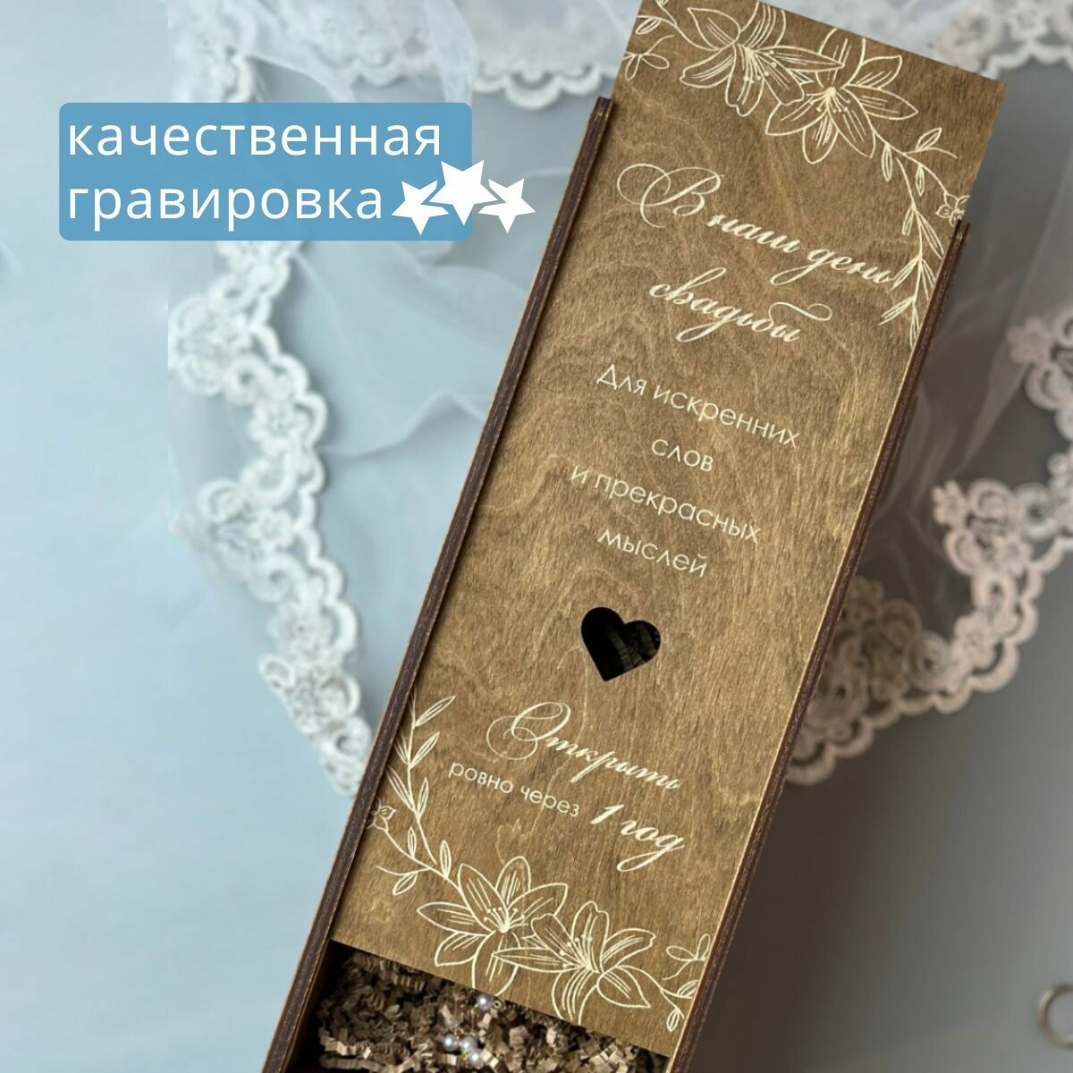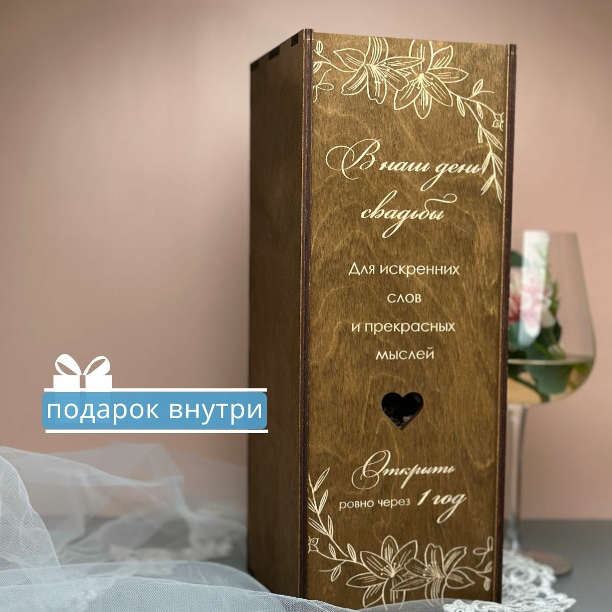 Подарочная коробка деревянная для вина " Открыть на годовщину" Свадьбатека 650 ₽