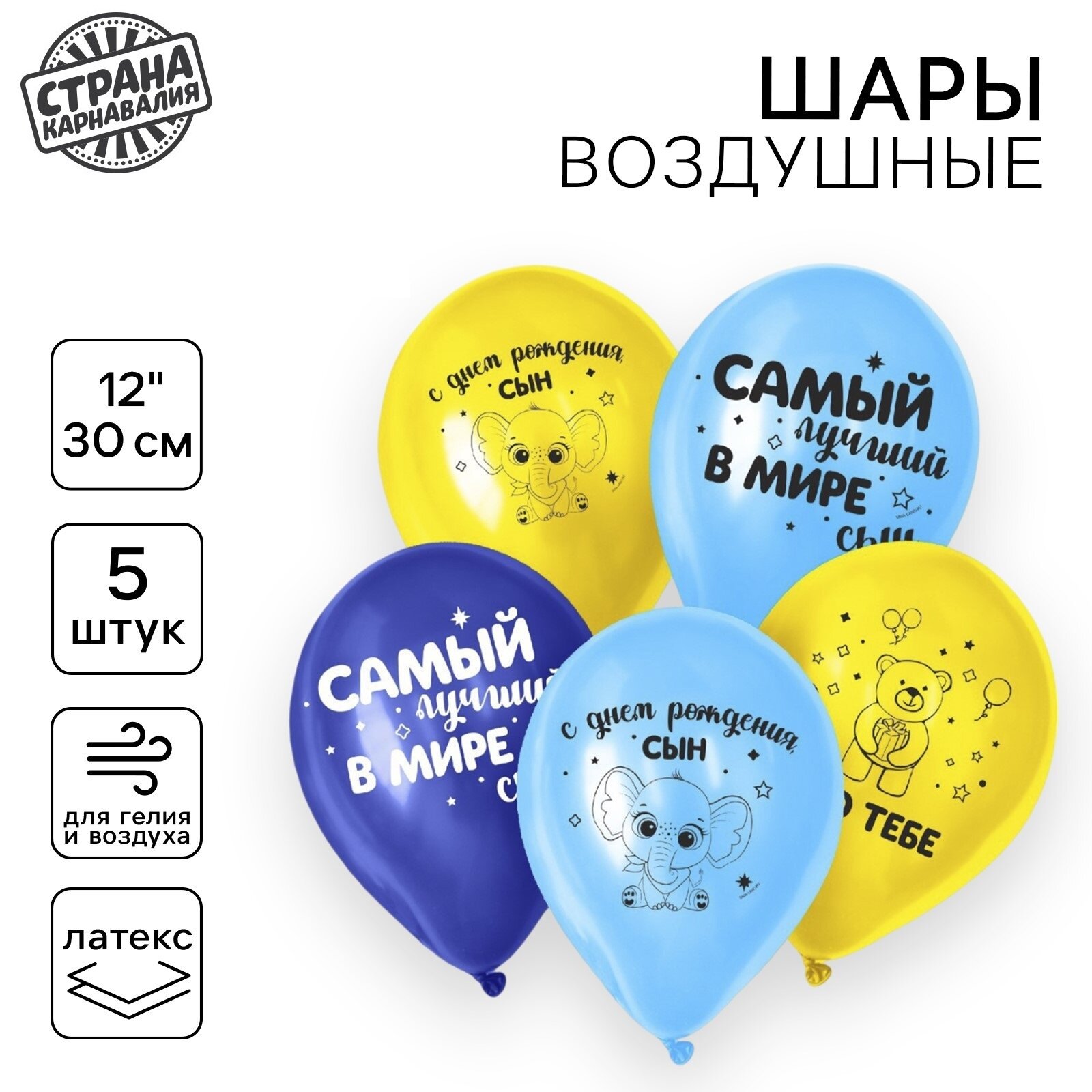 10 цен на Набор воздушных шаров Страна Карнавалия «С днём рождения, сын!», латекс, 30см, 5шт