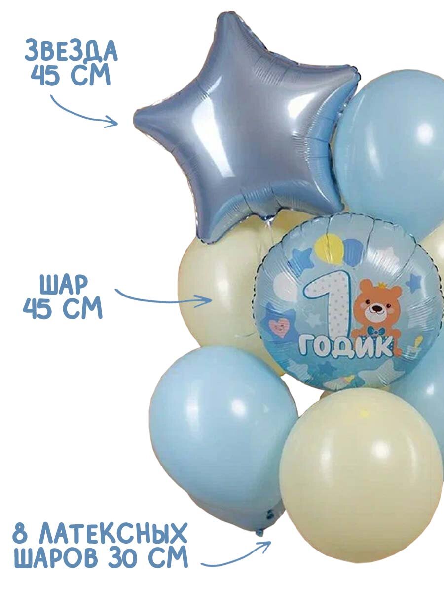 Набор воздушных шаров Мосшар "На 1 Годик", для мальчиков, на день рождения, 10шт информация: