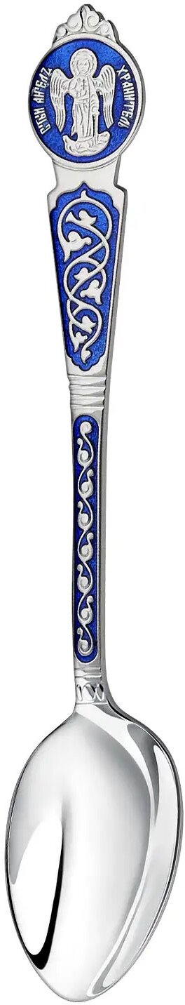 Серебряная детская ложка Ангел-Хранитель с синей эмалью информация: