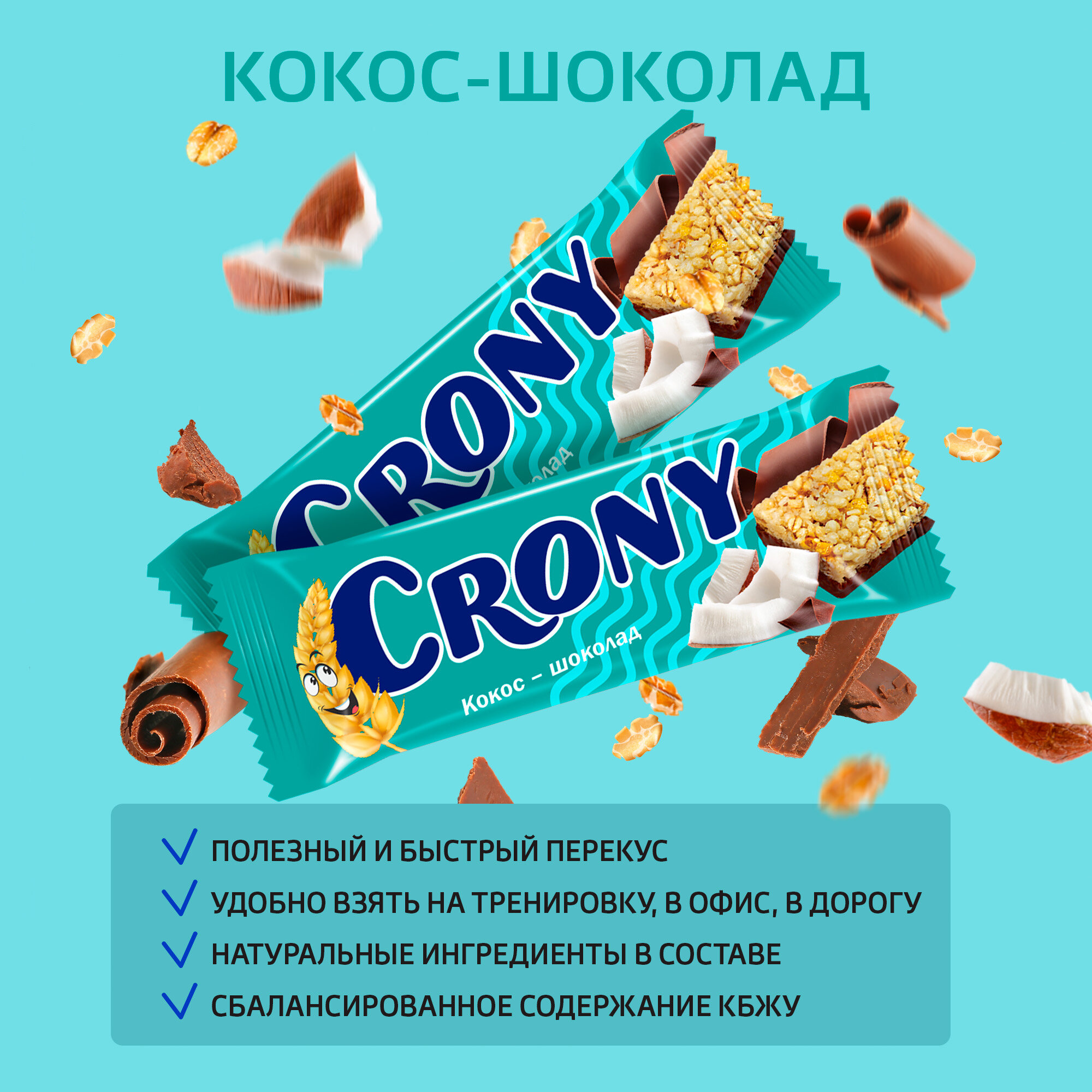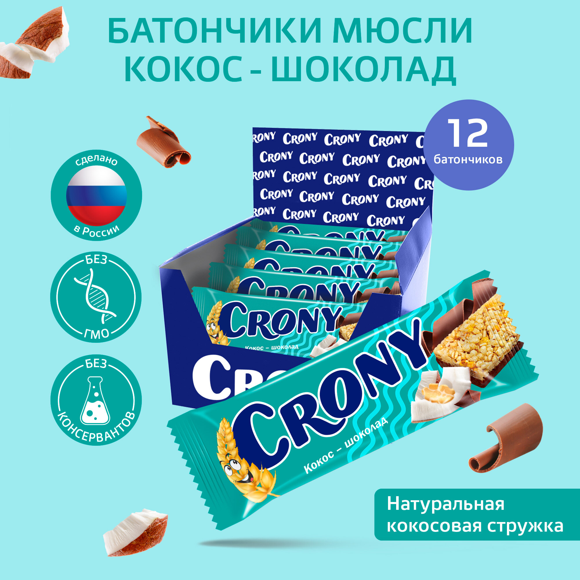 10 цен на Мюсли батончики злаковые набор 12 штук по 50 гр Кокос и шоколад CRONY ЛЕОВИТ