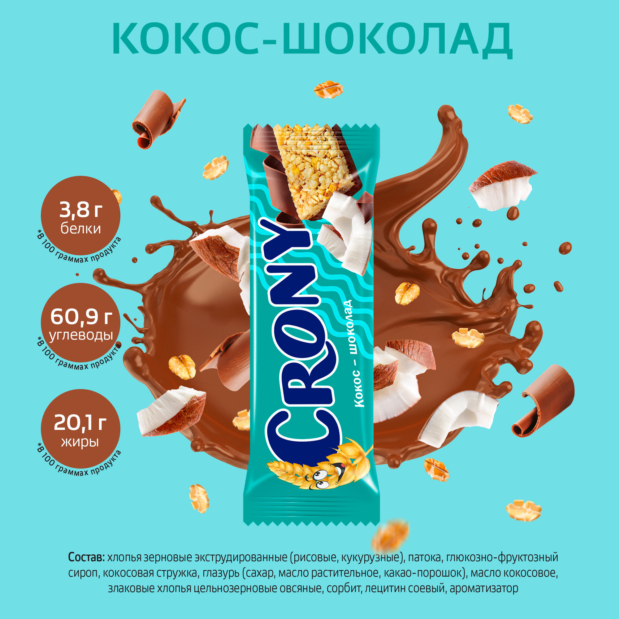 Мюсли батончики злаковые набор 12 штук по 50 гр Кокос и шоколад CRONY ЛЕОВИТ информация: