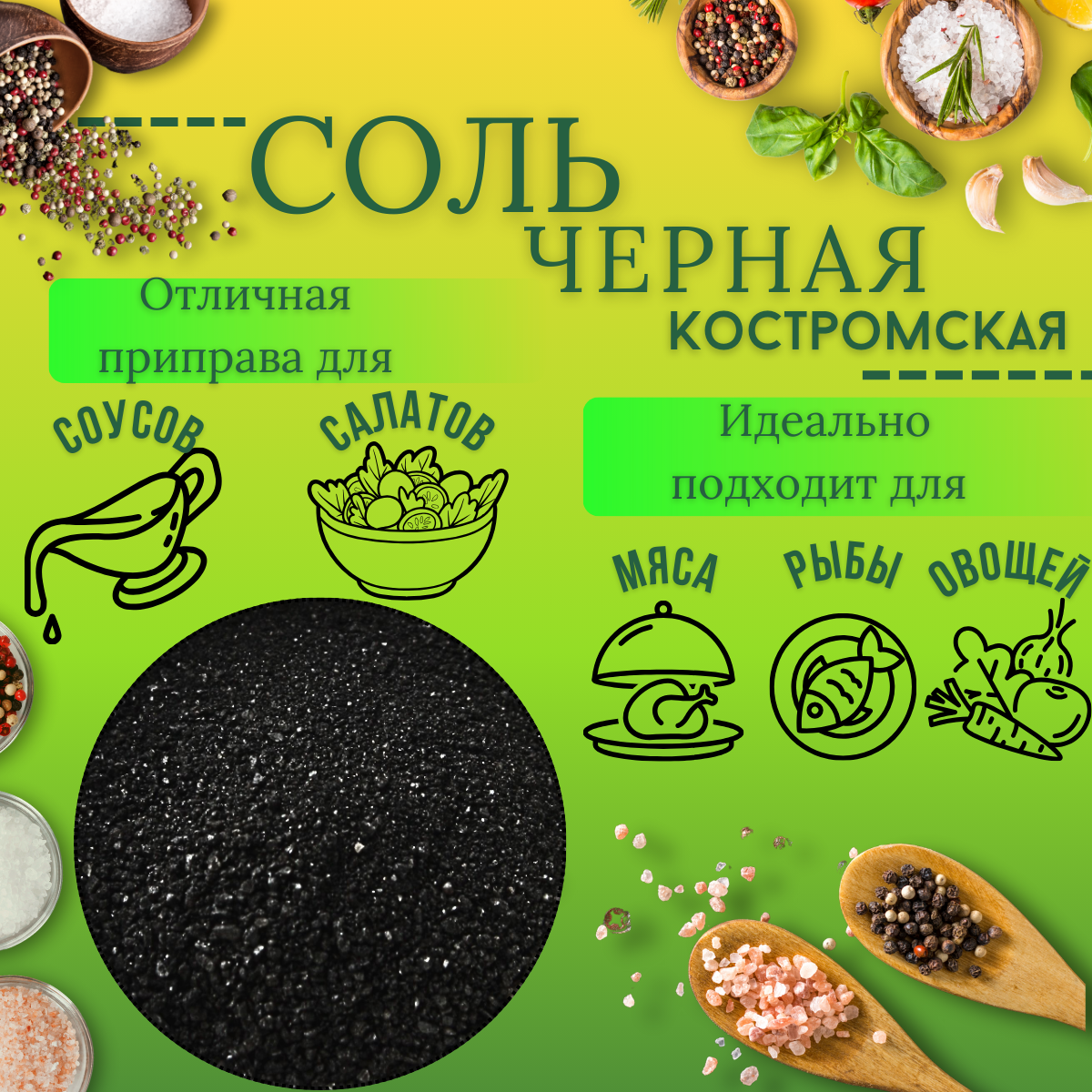 Соль черная костромская, "Перец и Соль", без ГМО, 50г, авторская смесь. информация: