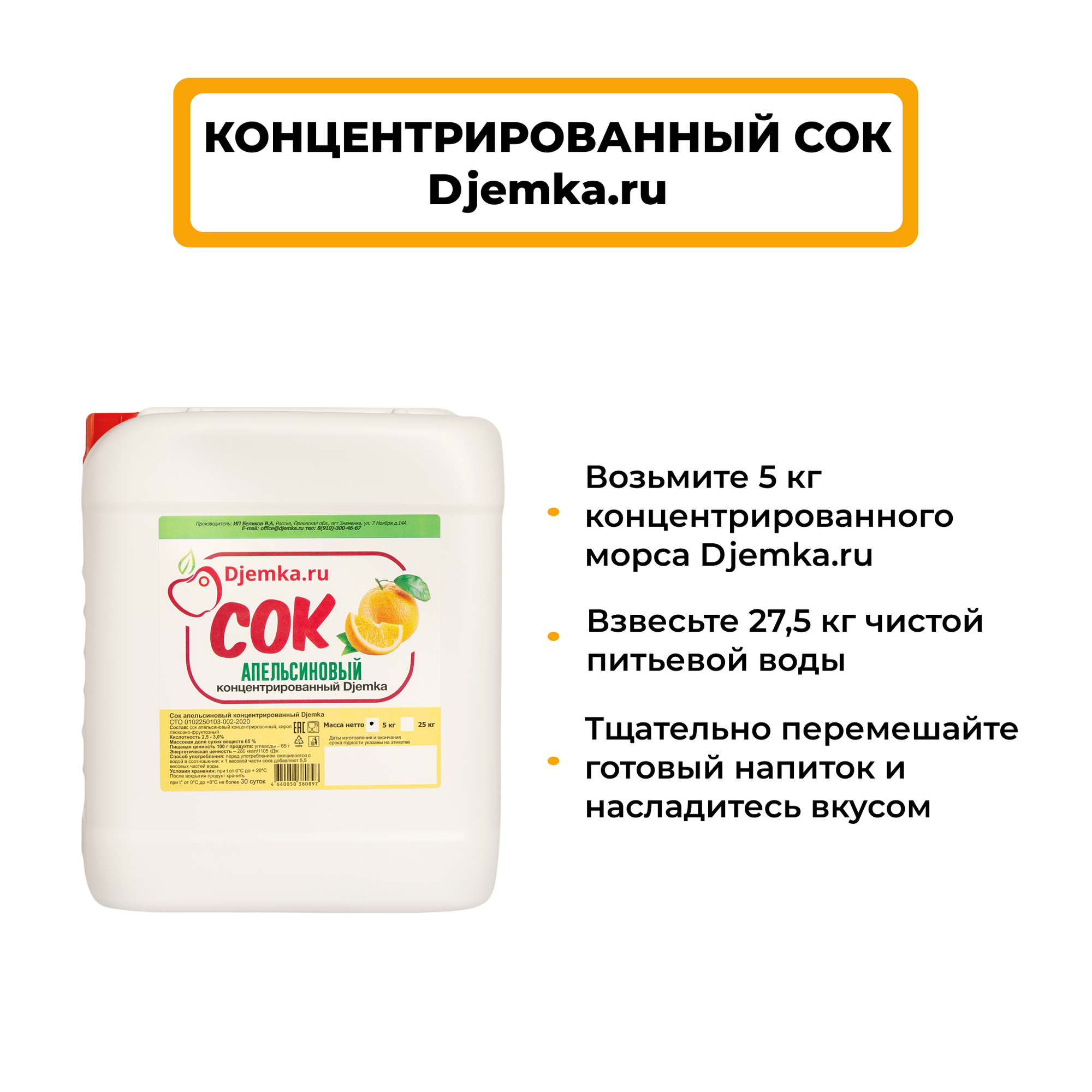 Сок Djemka.ru "Апельсин", концентрированный, в пластиковой канистре, 5 кг информация: