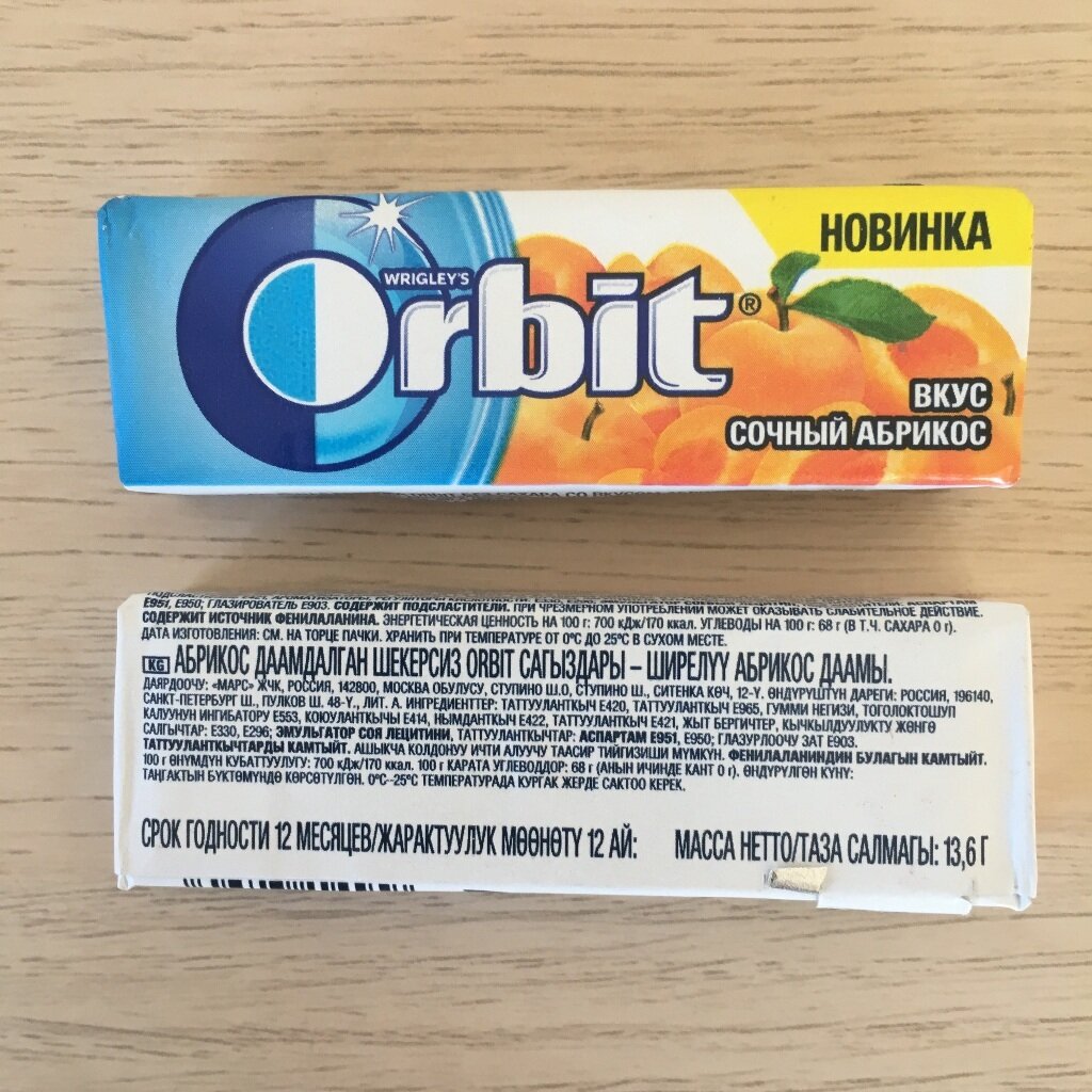 Отзывы на Орбит. Жевательная резинка "Сочный абрикос" без сахара,30 пачек по 13.6 гр.