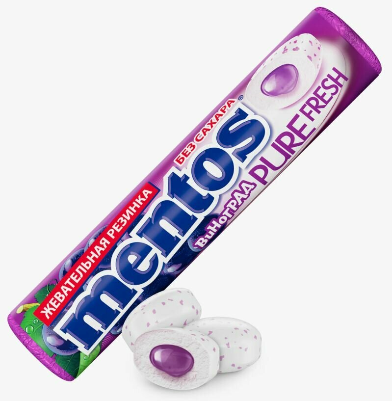 Отзывы на Жевательная резинка в упаковке Mentos Pure Fresh вкус Виноград,15,5 гр - 24 штуки