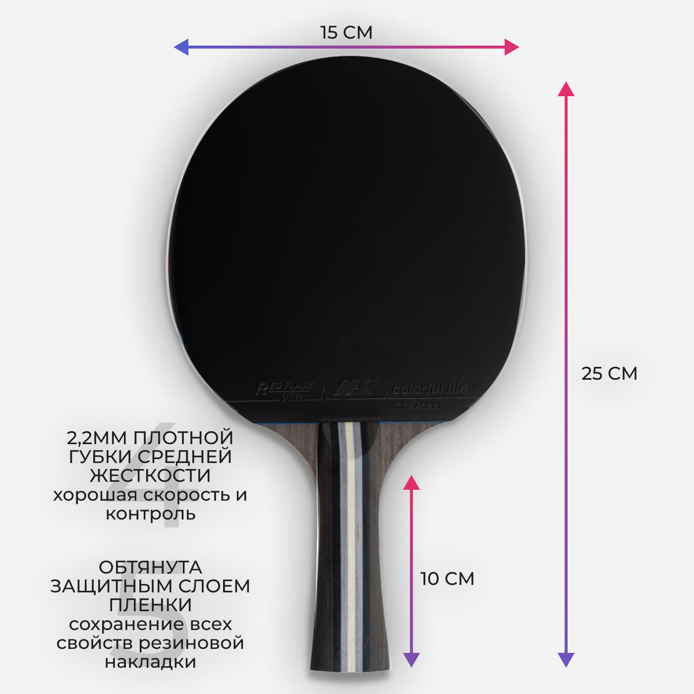 Ракетки для настольного тенниса: 2 ракетки, 3 белых мячика и чехол информация: