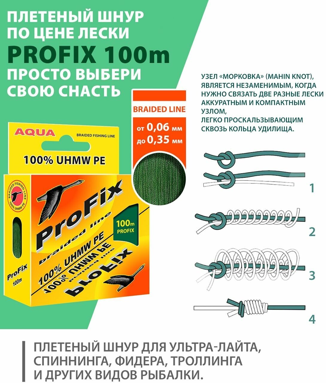 10 цен на Плетеный шнур AQUA ProFix 100m dark green, d 0,18mm