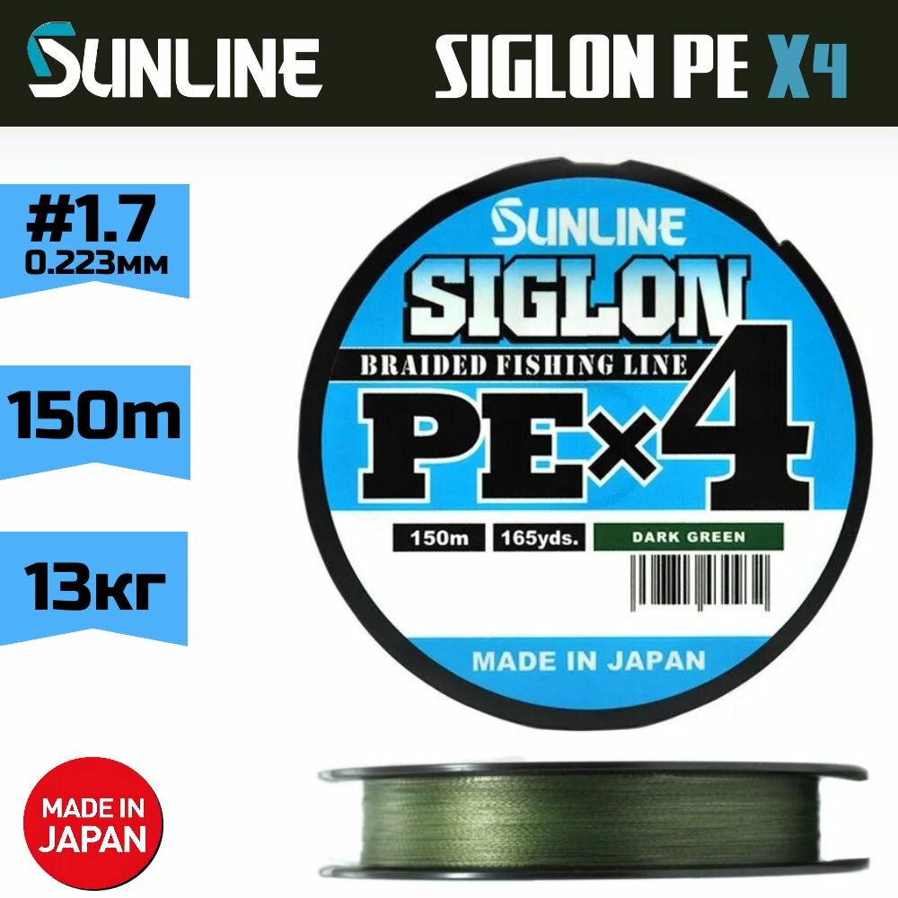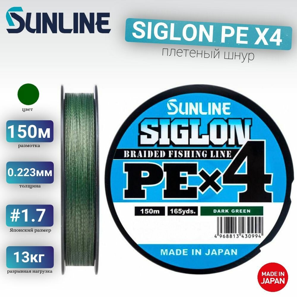 Плетеный шнур для рыбалки Sunline SIGLON PE X4 150м Dark Green # 1.7 (30Lb) 1 695 ₽