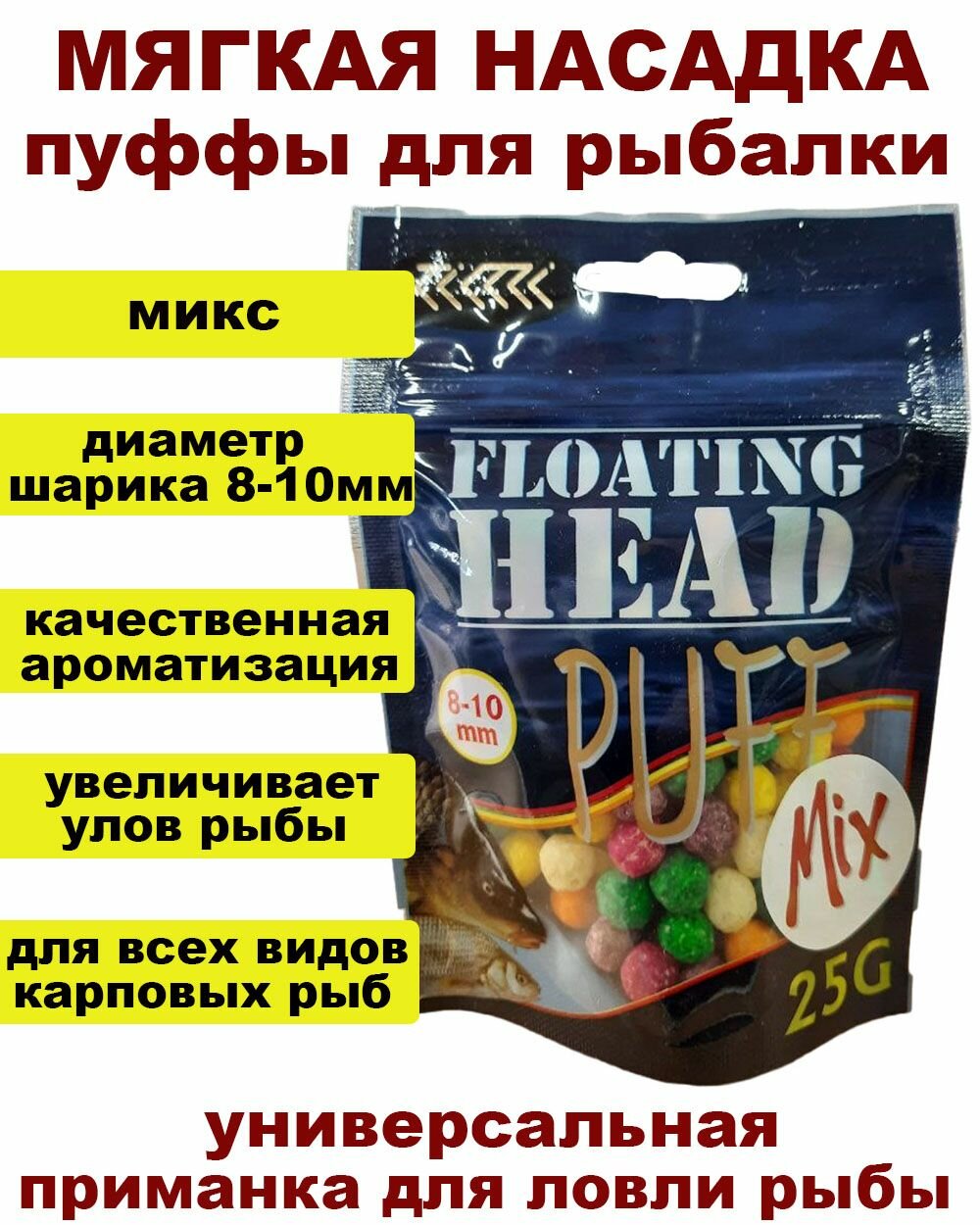 Мягкая приманка / Пуффы для рыбалки 8-10 мм "Микс" - воздушные плавающие шарики для рыбалки информация: