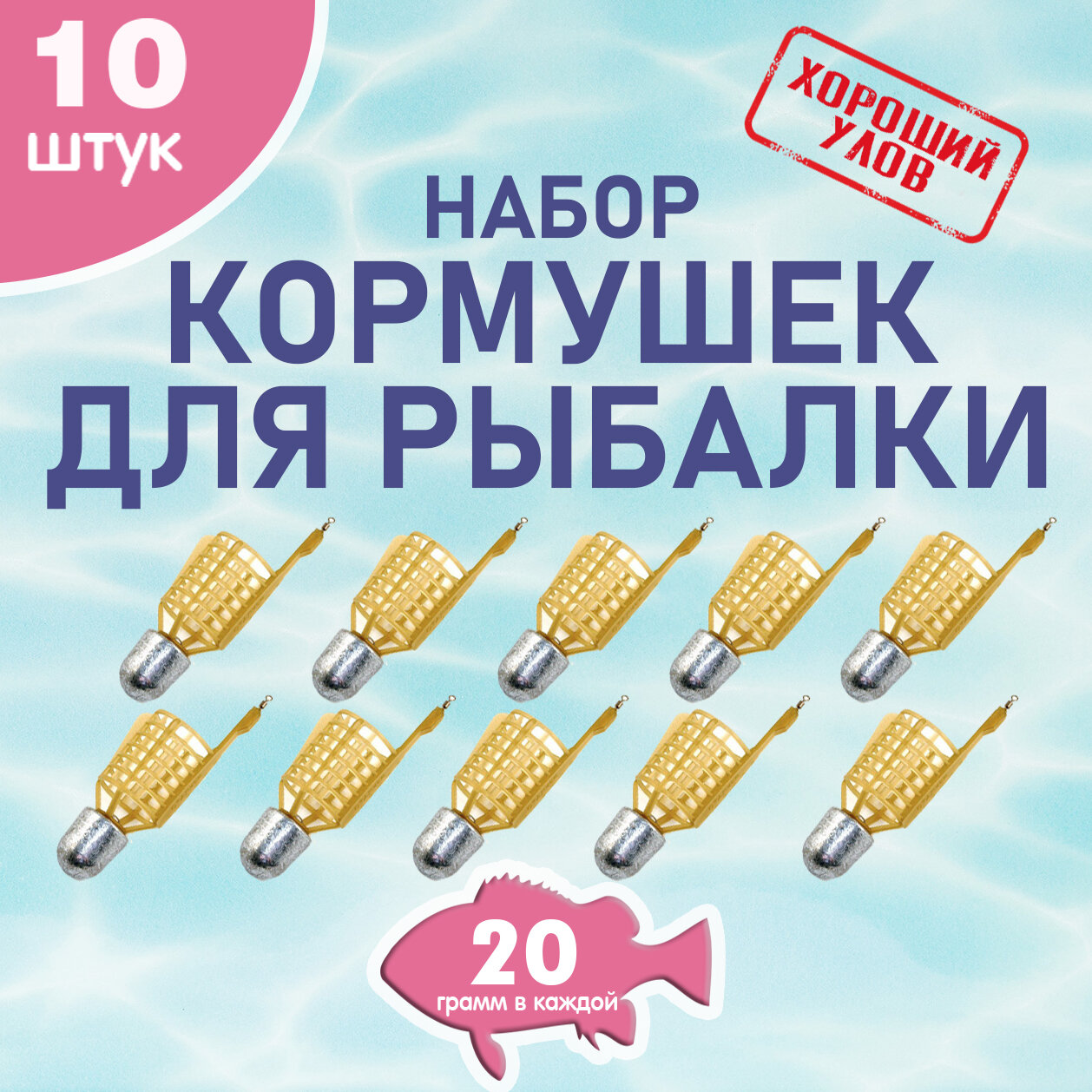 10 цен на Набор рыболовных кормушек Пуля, кормушка фидерная снасть для рыбалки, уп. 10 шт, вес 20 гр.