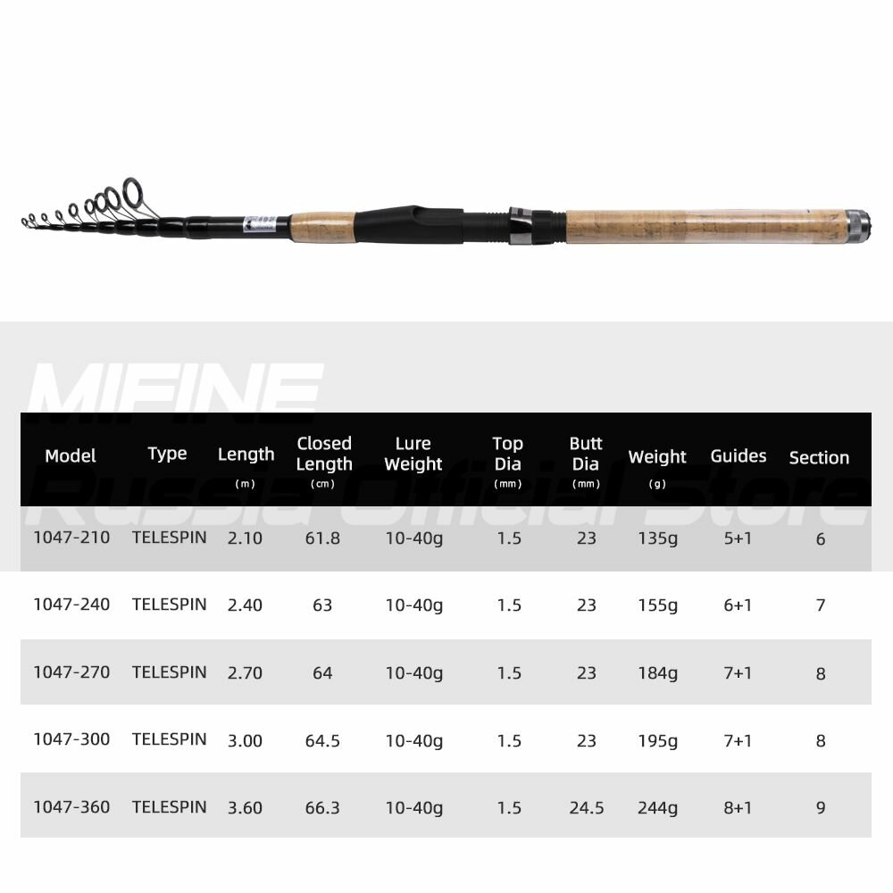 10 цен на Спиннинг телескопический MIFINE GOZZILLA TELESPIN 3.00м (10-40гр), рыболовный, удилище для рыбалки, карбон