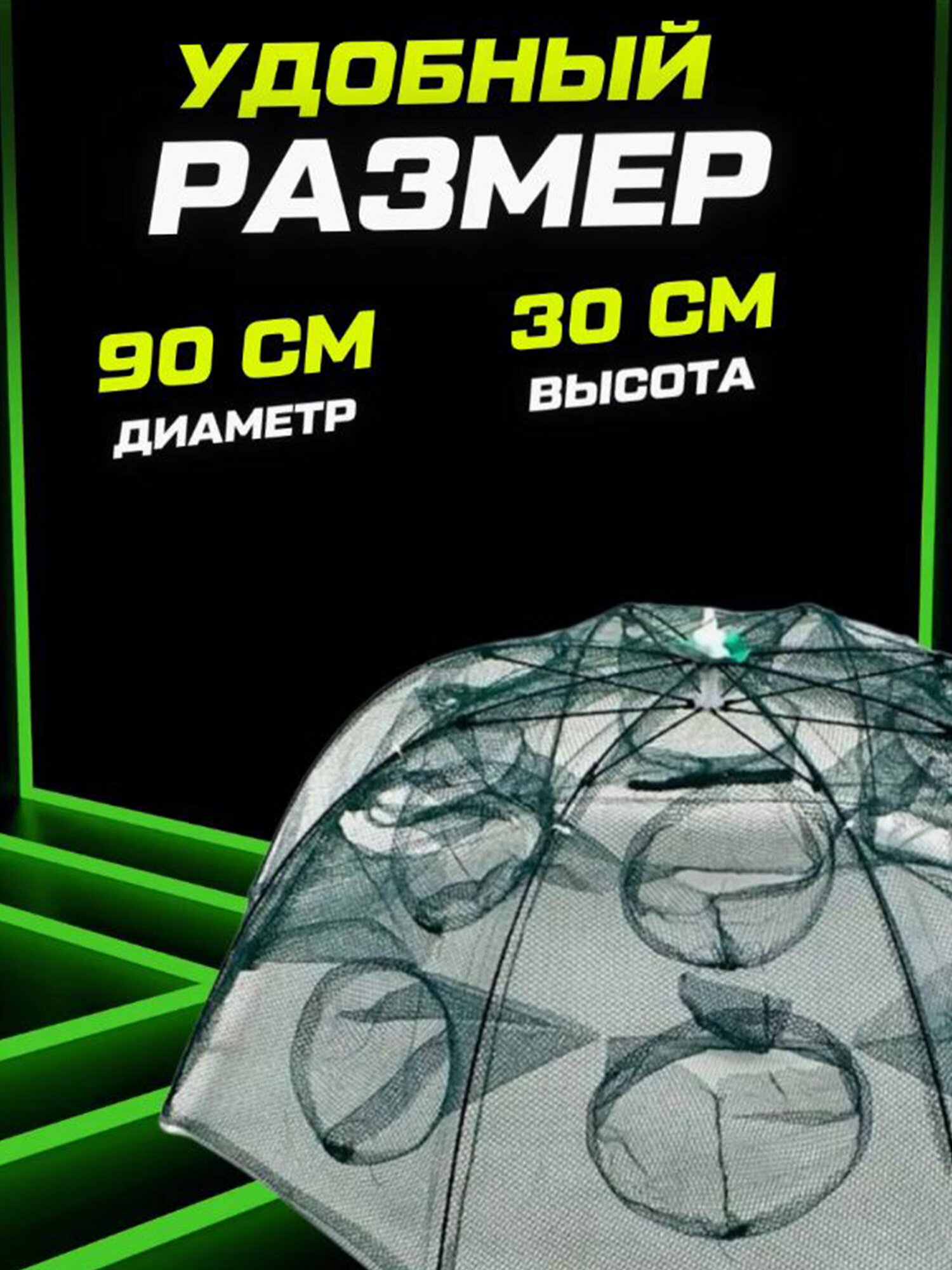 Раколовка зонт 8 входов для рыбалки на рыбу, раков, складная конструкция информация: