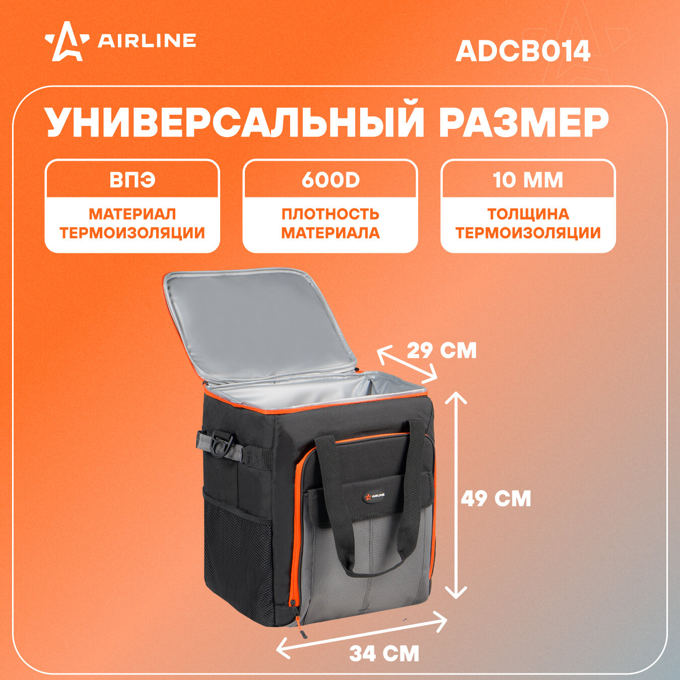 AIRLINE ADCB010 Сумка-холодильник (термосумка)Пикник, 56л, 41*34*41см, водонепр, серая (ADCB010)