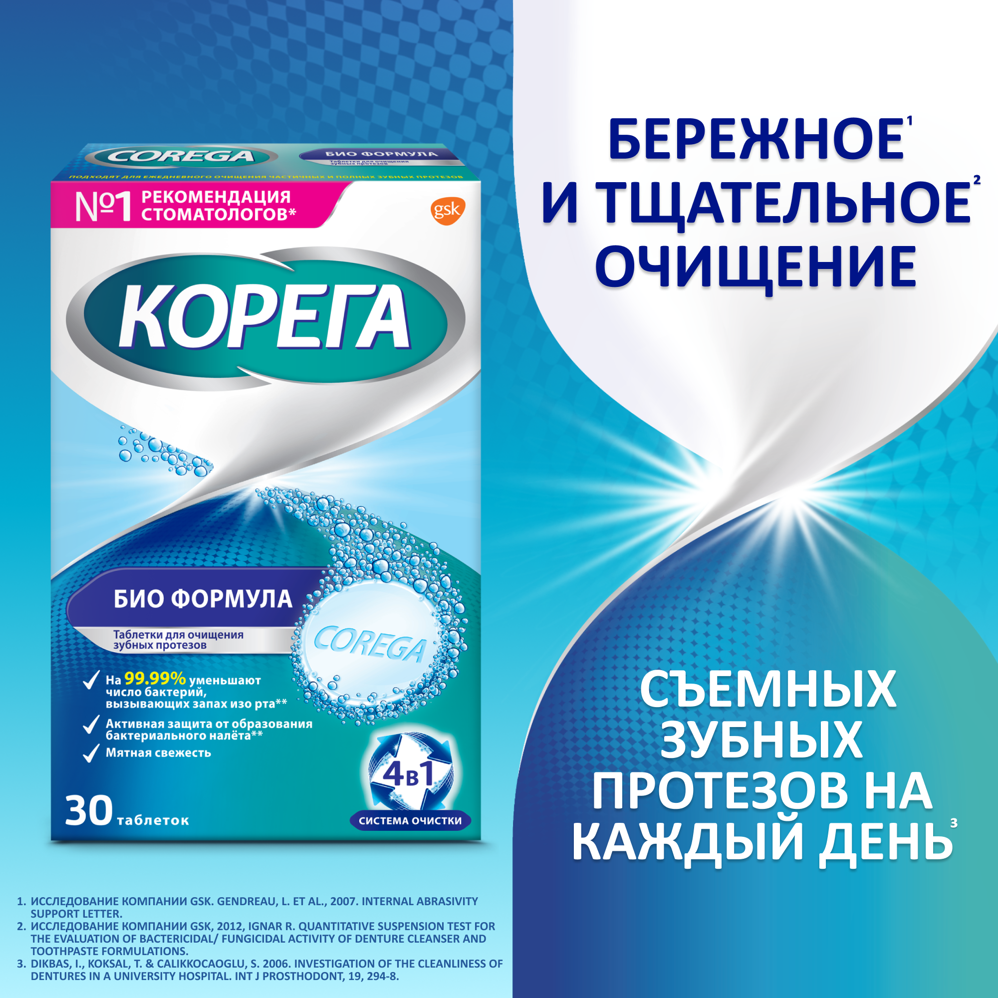 Корега Био Формула таблетки для очищения зубных протезов, 30 шт. информация:
