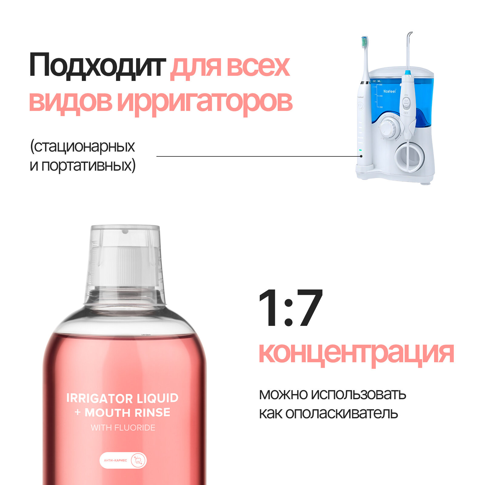Отзывы на Жидкость для ирригатора (антикариес) IRRIGATOR LIQUID + MOUTH RINSE (WITH FLUORIDE)