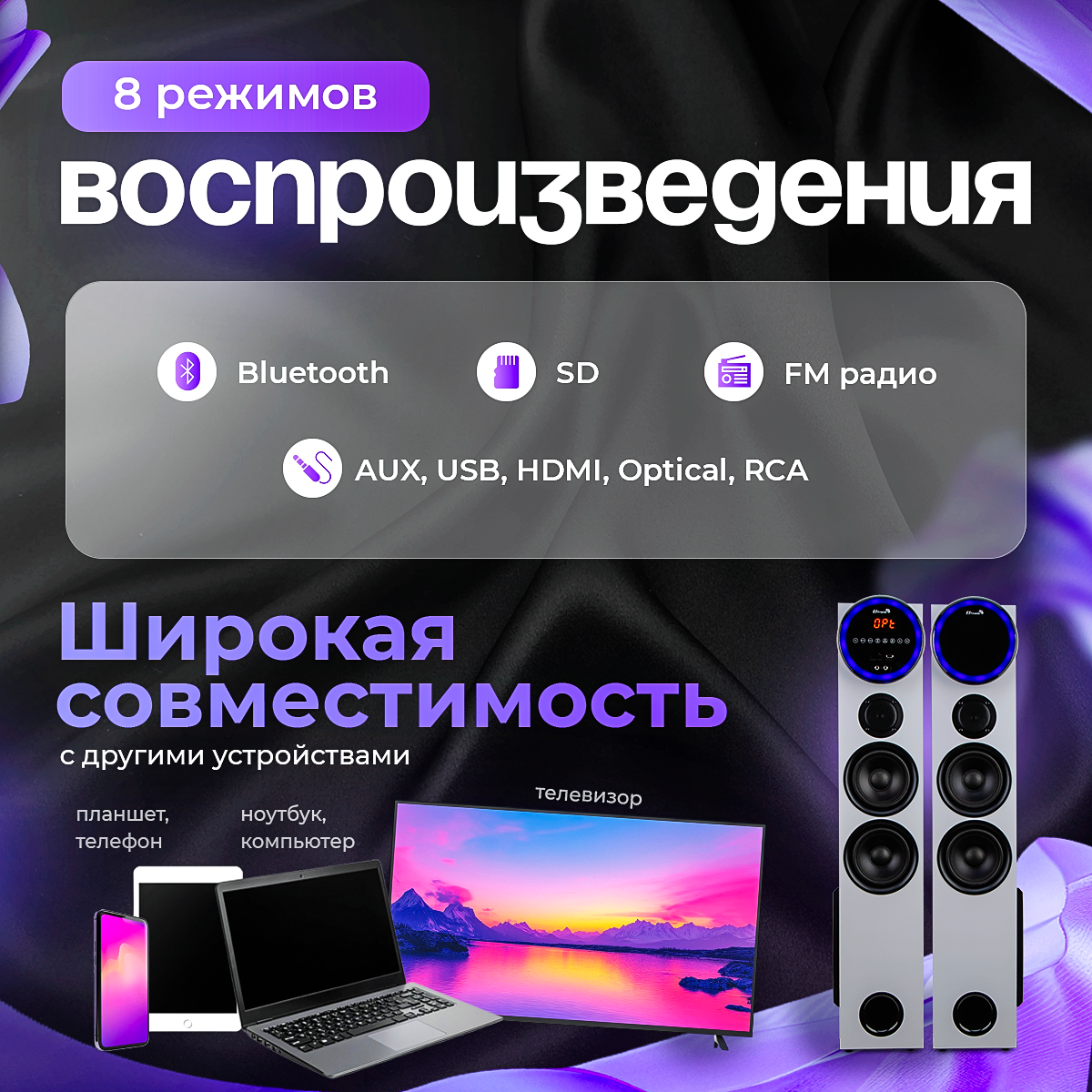 Акустические колонки ELTRONIC Home Sound 30-35 (серебро), 220 В, 6 полос, Bluetooth, FM, 30 Гц - 20 кГц информация: