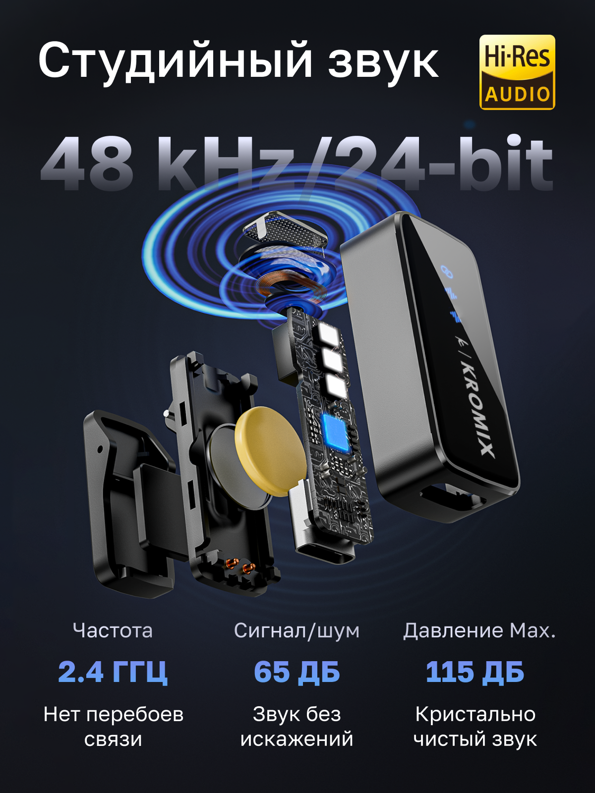 Отзывы на Петличный беспроводной микрофон 2шт Kromix Vlogio для iPhone, Android, камеры