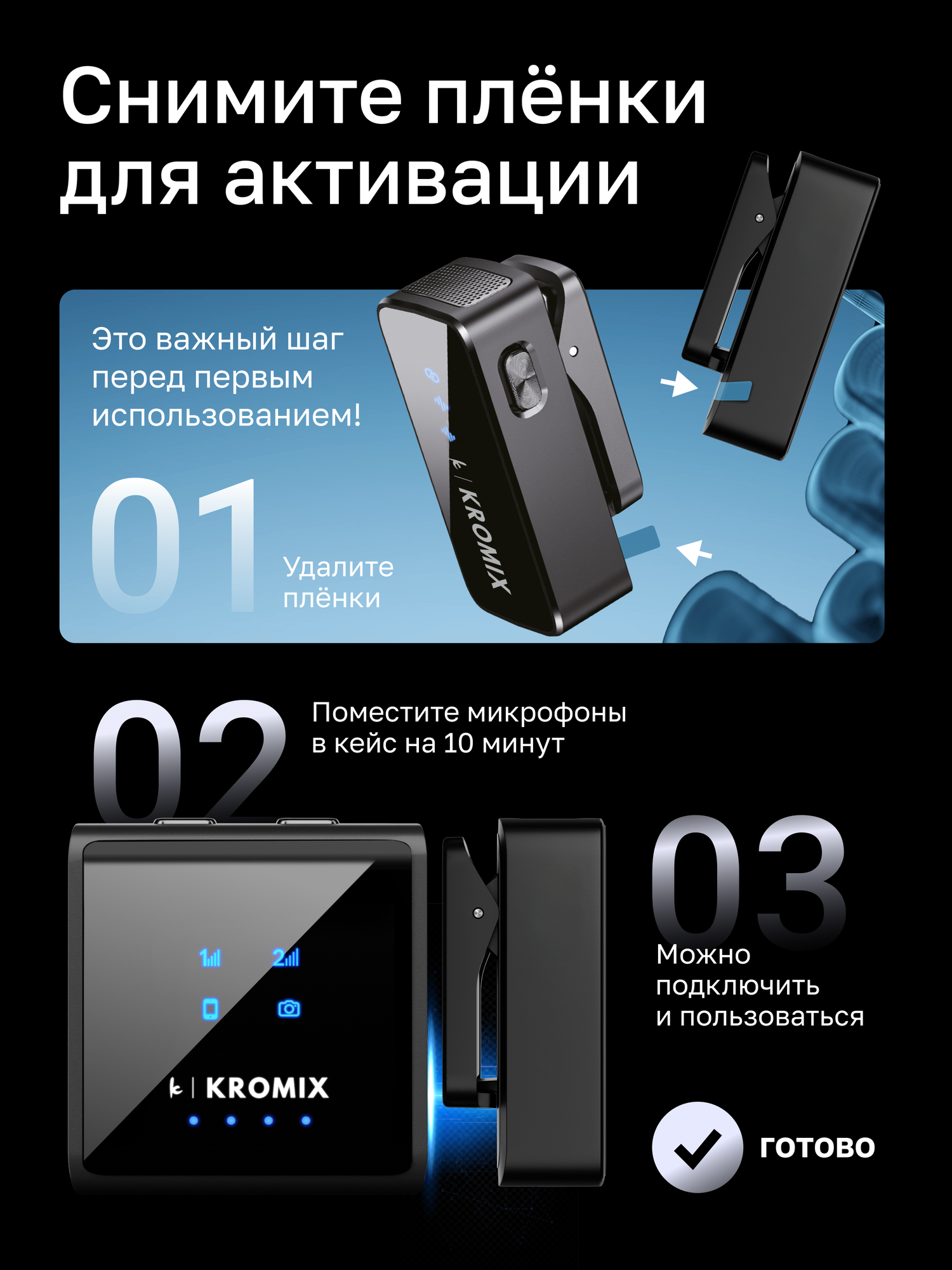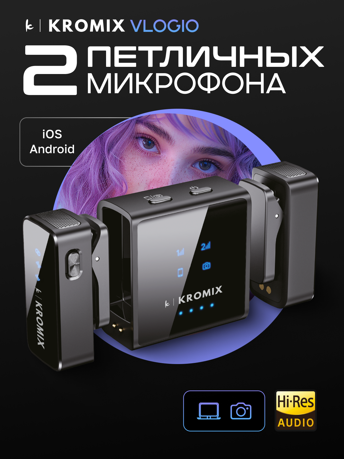 Петличный беспроводной микрофон 2шт Kromix Vlogio для iPhone, Android, камеры информация: