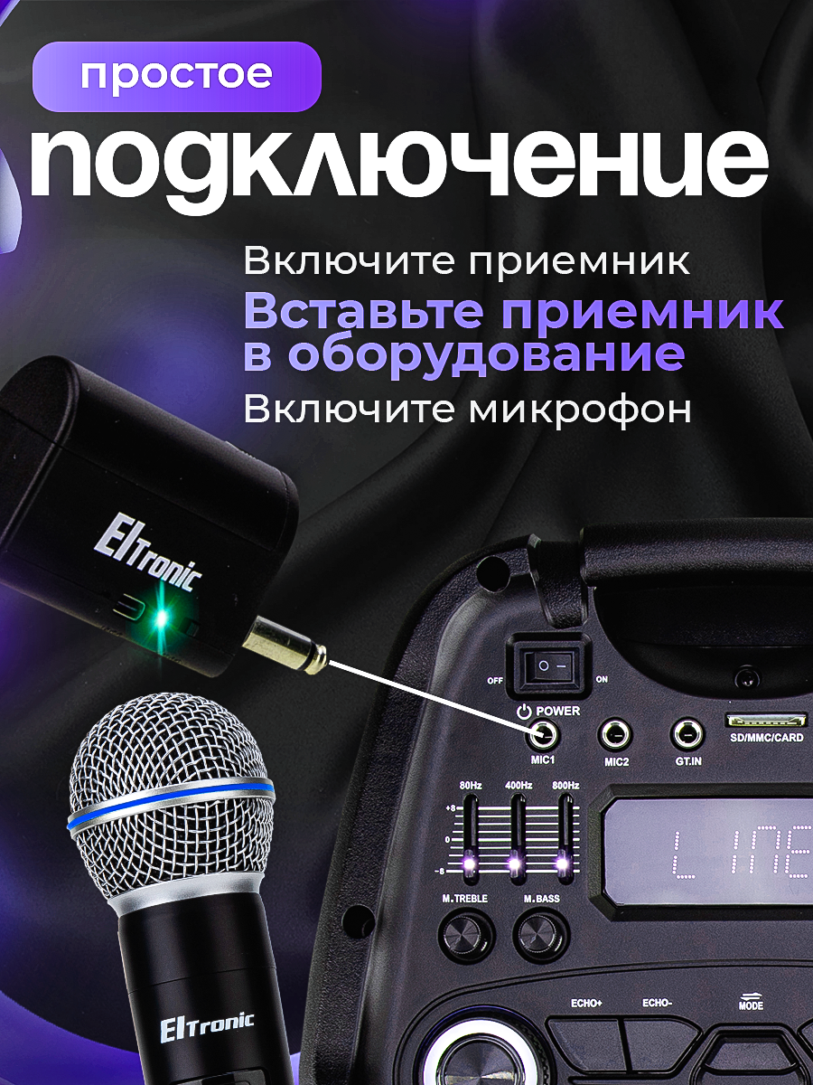 10 цен на Беспроводной микрофон Eltronic 10-03, динамический, кардиоидная диаграмма