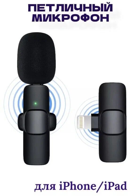Беспроводной петличный микрофон K9 Lightning(2 в1) для iPhone/iPad, Черный информация: