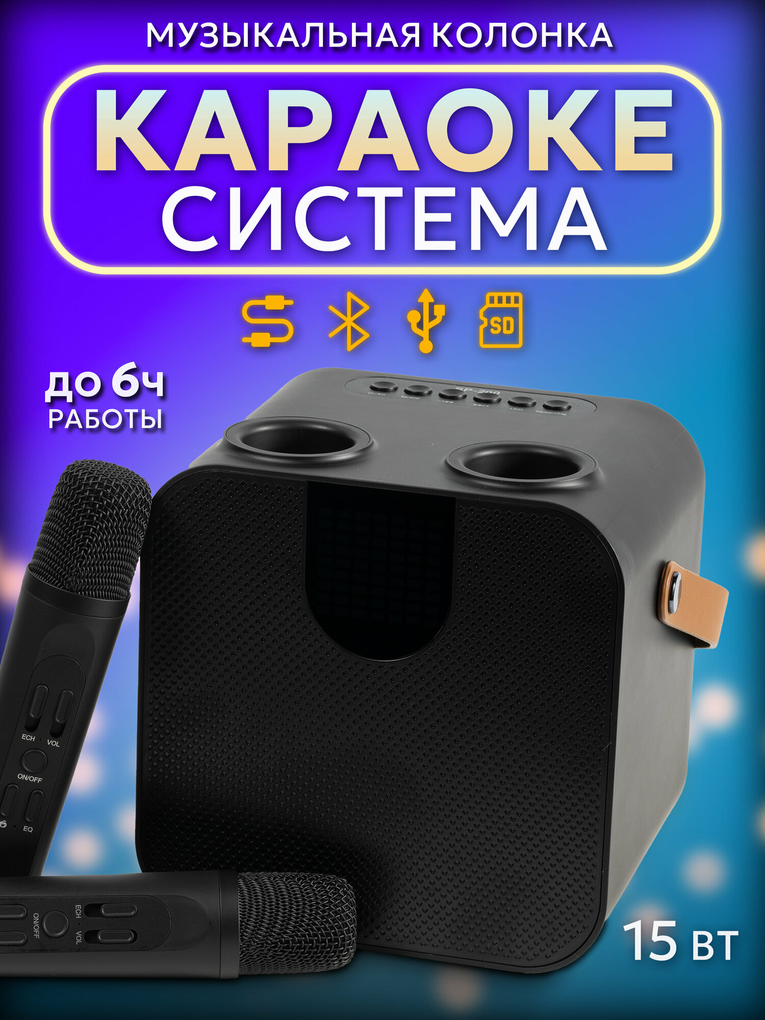 Караоке-система Electroworld SP-200, 2 микрофона, домашняя, черная информация: