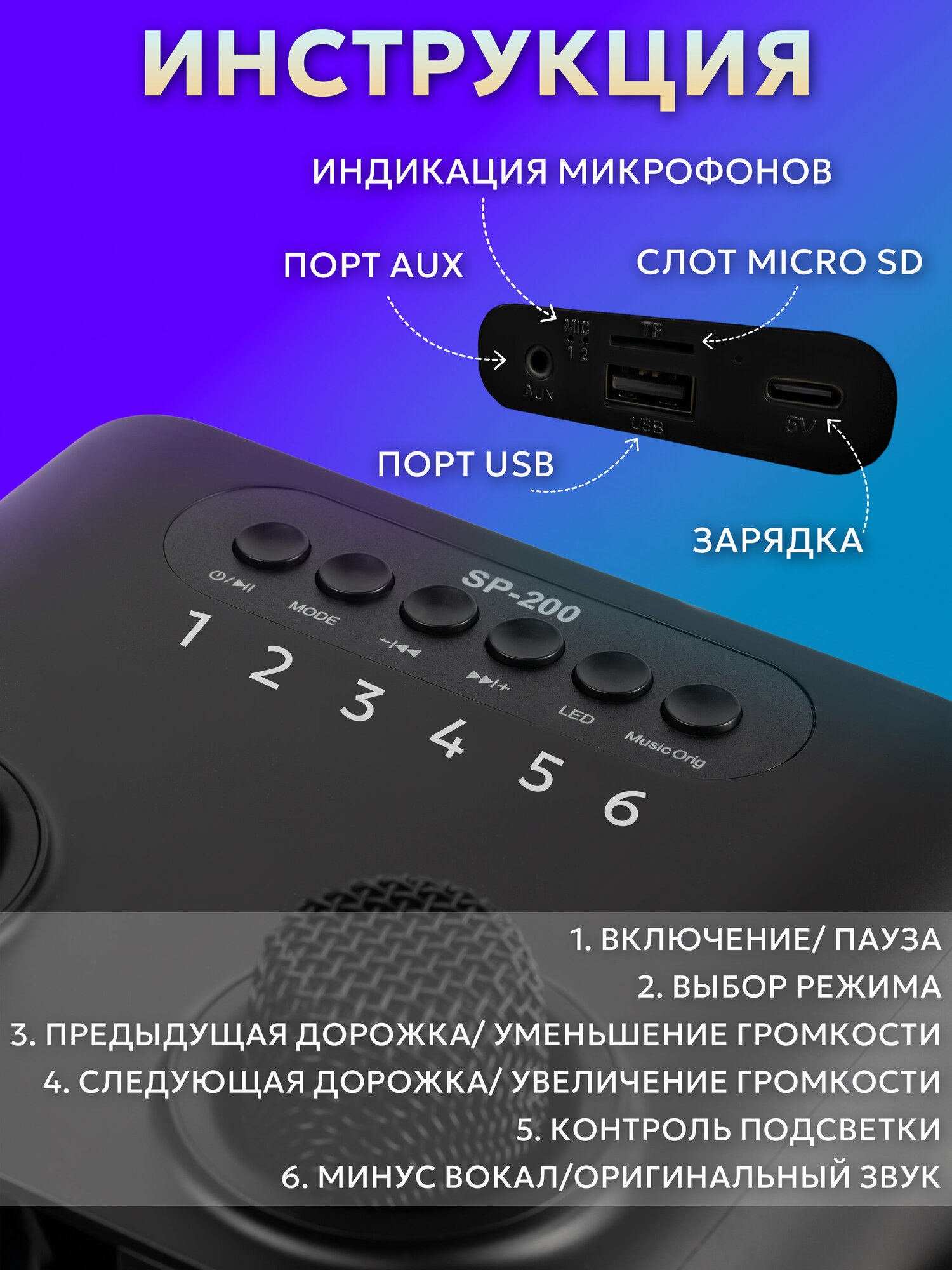 | Подробная комплектация | Караоке система с 2 мя микрофонами |
