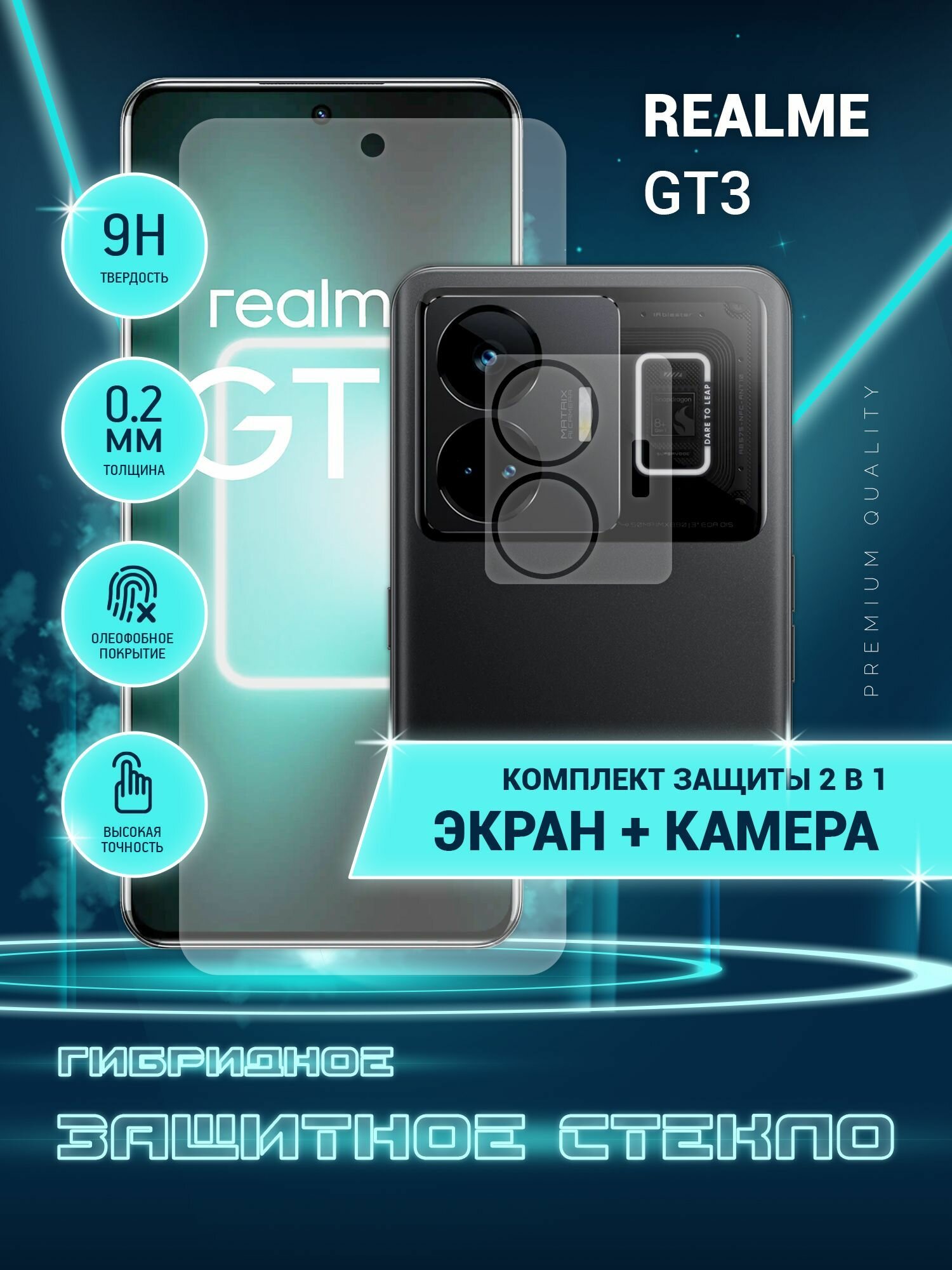 Защитное стекло для Realme GT3 на экран и камеру, гибридное (пленка + стекловолокно), Crystal boost информация:
