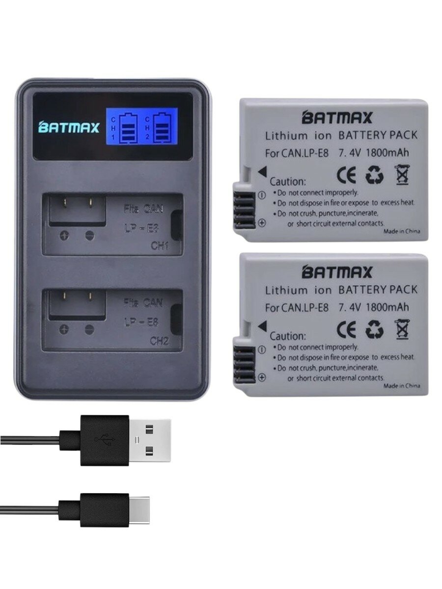 Отзывы на Аккумуляторная батарея Batmax 2 шт и зарядное устройство для фото-видеокамер Canon EOS 550D (LP-E8) 7,4V 1800 mAh