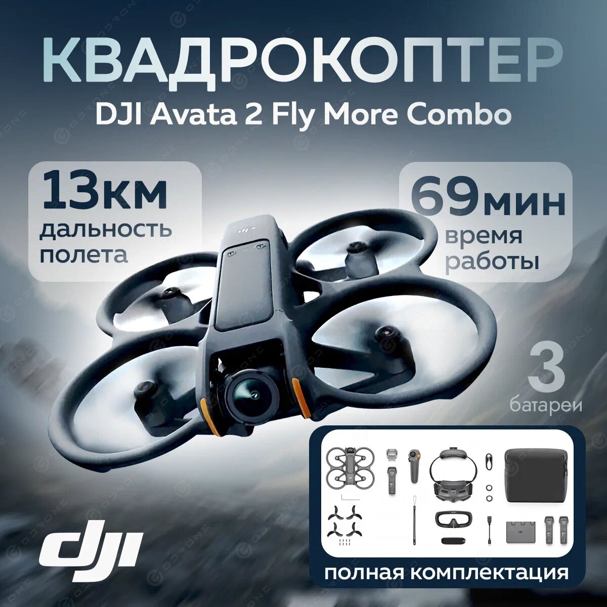 Квадрокоптер DJI Avata 2 Fly More Combo (3 АКБ) для аэрофотосъёмки информация: