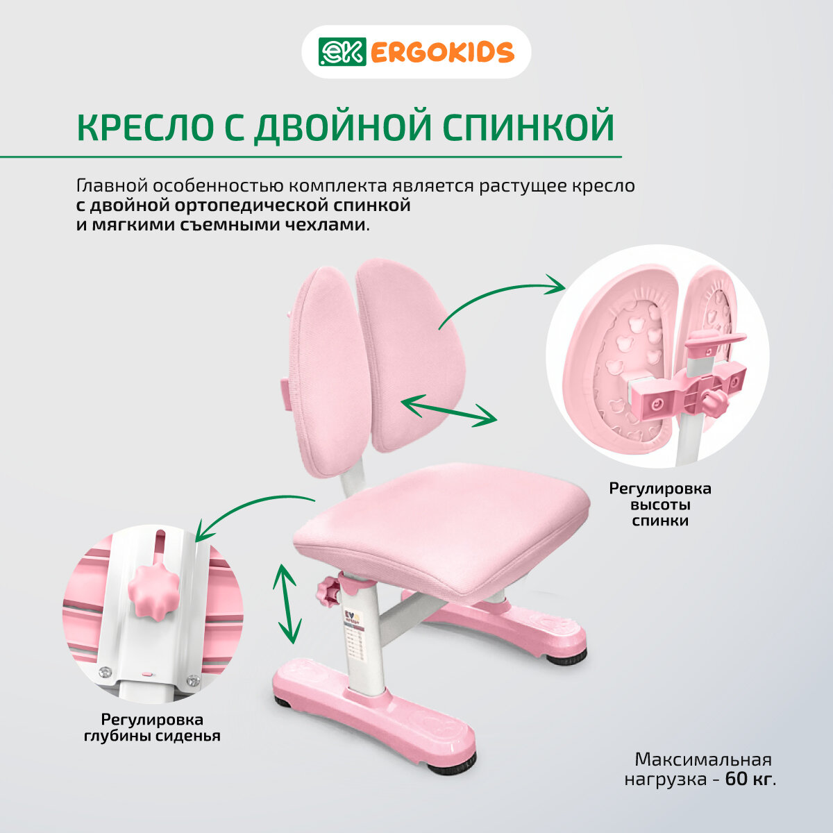 Растущий стол парта и стул детский набор Ergokids Panda XL BD-29 розовый информация: